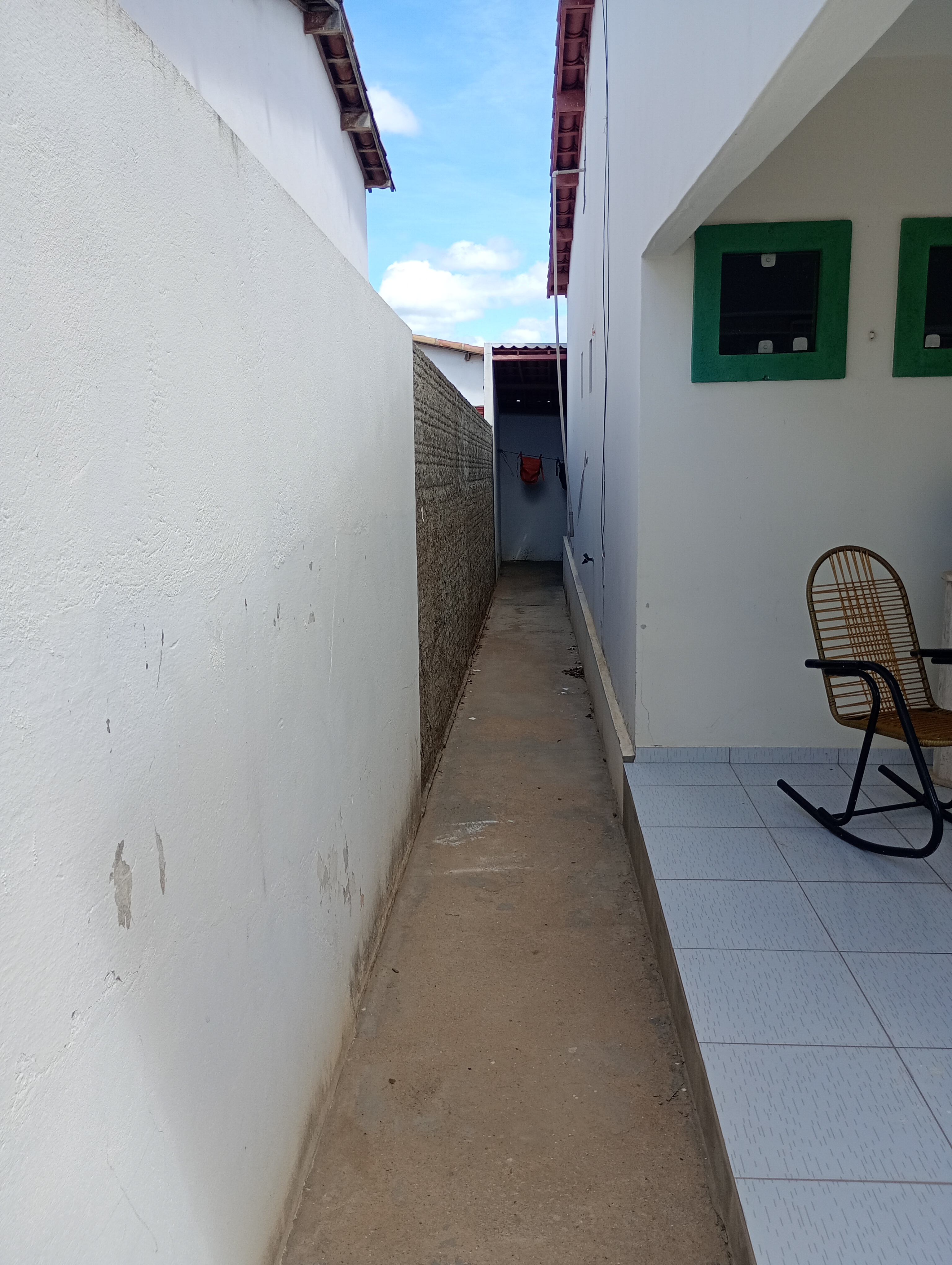 Vendo imóvel com garagem, sala, cozinha, área de serviço, três quartos, sendo um suíte, um banheiro social, becos nas laterais. Aceita financiamento habitacional.